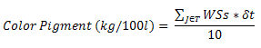 Das Farbpigment (kg/100l) wird in Abhängigkeit vom Gewichtsanteil (%) für die Substanzen berechnet, die den Substanztyp Farbstoff aufweisen, und der Farbstoff ist ein Farbpigment vom Aufschlüsselungsergebnis pro Substanz, der theoretischen Dichtheit für den übergeordneten Artikel geteilt durch 10.