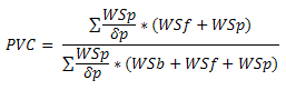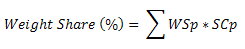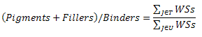 WSx = Gewichtsanteil (%) pro spezifischem Substanztyp, wobei x f = Füllstoff, b = Bindematerial, p = Farbstoff sein könnte