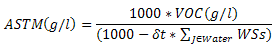 Der ASTM (g/l) wird in Abhängigkeit von VOC (g/l), der theoretischen Rezepturdichtheit für den übergeordneten Artikel und dem Gewichtsanteil (%) für den Substanztyp Wasser vom Aufschlüsselungsergebnis pro Substanz berechnet.