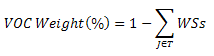 Die flüchtige Dichtheit für den übergeordneten Artikel wird in Abhängigkeit des Gewichtsanteils (%) der flüchtigen Substanzen und der Dichtheit für diese Substanzen berechnet.