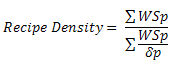Die Dichtheit für die Rezeptur (übergeordneter Artikel) wird in Abhängigkeit von der Komponentendichtheit unter Artikel/Komposition nach Gewicht und dem Gewichtsanteil (%) für jede Komponente im Aufschlüsselungsergebnis berechnet.
