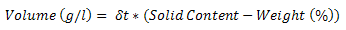 Das Volumen des Festkörperinhalts (lb/gal(US)) ist identisch mit dem Volumen des Festkörperinhalts (g/l), wenn der Wert umgewandelt ist.