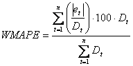 WMAPE は加重平均絶対パーセント誤差の略語で、式は次のとおりです。